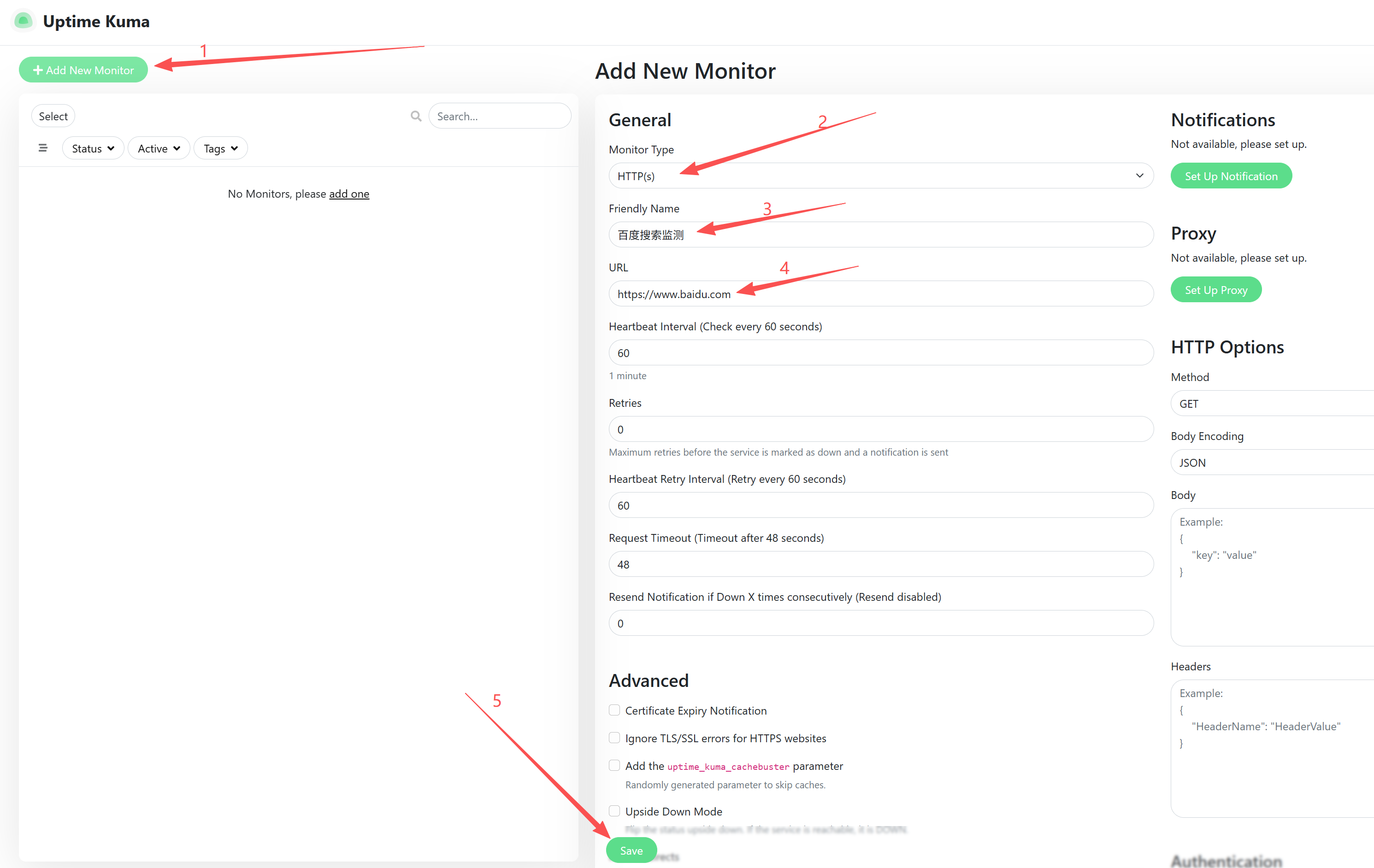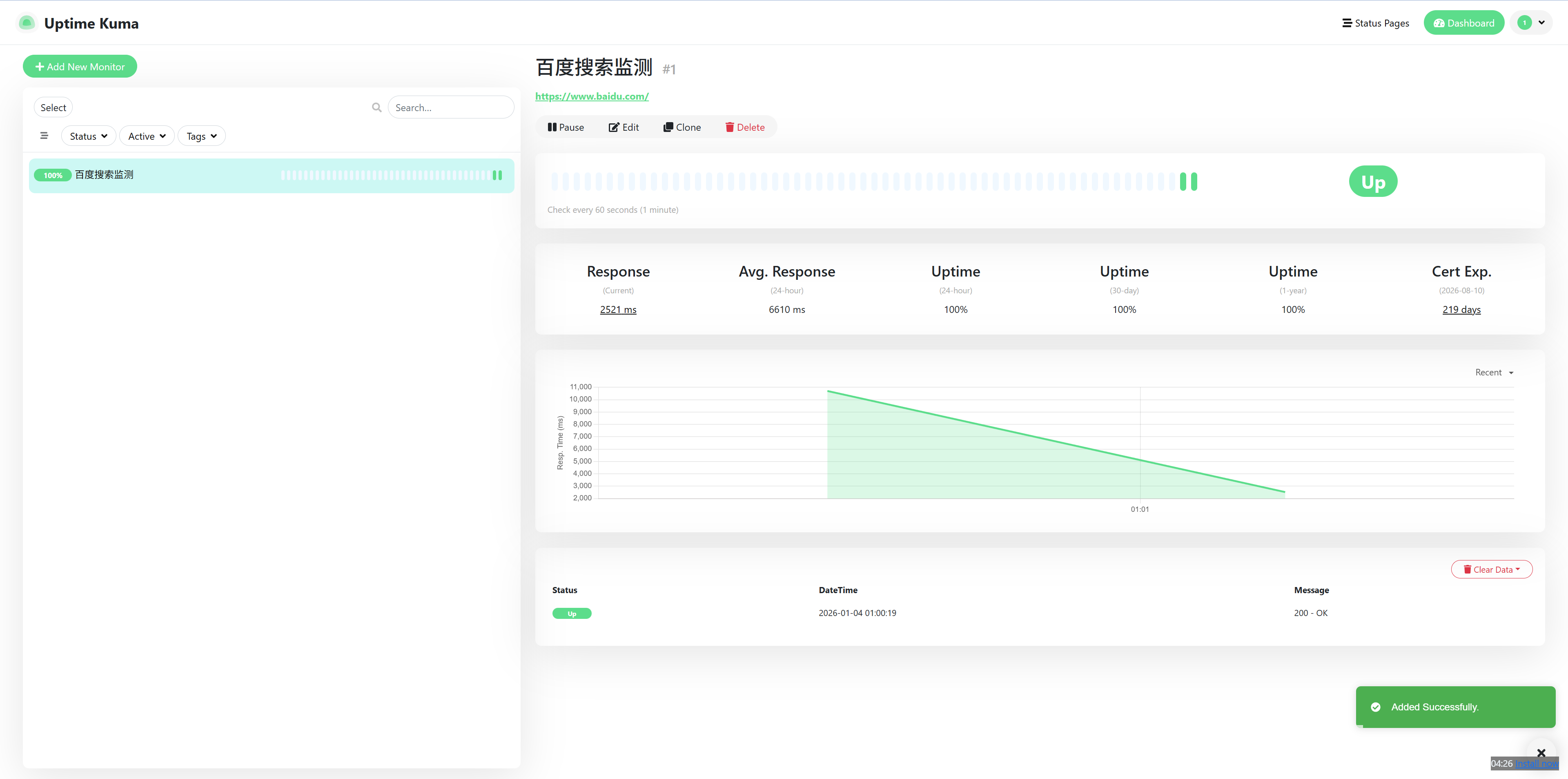 添加需要监测的服务(此处以百度搜索为例)